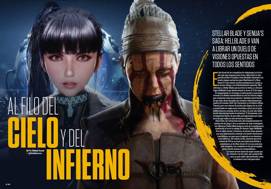 Stellar Blade y Senua’s Saga: Hellblade II. Los nuevos juegos exclusivos de PlayStation 5 y Xbox Series X-S van a librar un encarnizado duelo de similitudes y contrastes, pues se trata de dos juegos de acción desarrollados por estudios pequeños (pero con grandes valores de producción) y protagonizados por mujeres, pero con visiones opuestas del propio género de la acción, de la feminidad o de la dicotomía entre el cielo y el infierno.