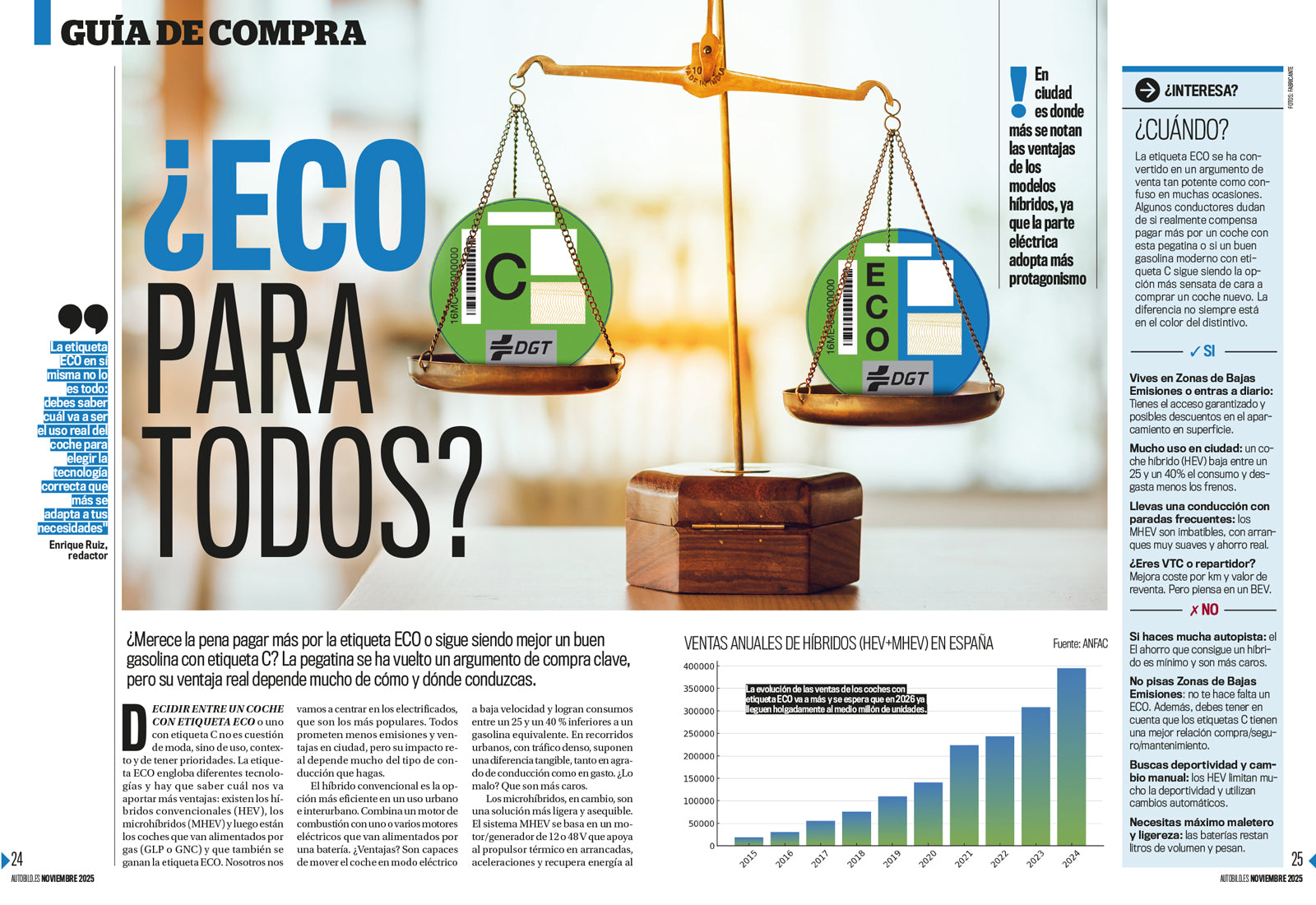 El número 683 de la revista AUTO BILD está protagonizado por una interesante guía de compra en la que seleccionamos los coches con etiqueta ECO que más interesan, para que tengas claro si es el momento de pasarse a la electrificación.
